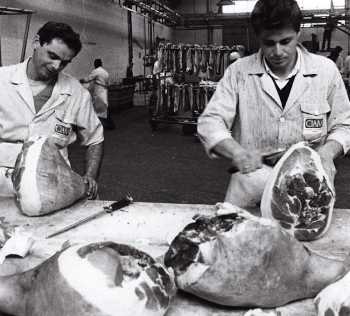 Tra anni Settanta e Ottanta l’introduzione della flessibilità lavorativa cambiò radicalmente la concezione e la divisione del tempo. Persero importanza la prima colazione e una schiera sempre più ampia di tute blu cominciò a disertare le mense aziendali. Tra i colletti bianchi, invece, si fece sempre più strada l’esigenza di un pranzo veloce e leggero, una specie di brunch, dove l’elemento “tempo” acquistò un ruolo centrale nella scelta del luogo e del prodotto da consumare. Anche il mondo giovanile, più per un desiderio di socialità che di esigenza lavorativa, cominciò a frequentare luoghi che divennero dei veri e propri punti di ritrovo più che sedi espressamente dedicate al consumo alimentare, come le paninoteche. Con il mutare dei gusti, dei luoghi e della coscienza nutrizionale cambiano anche le fortune e le sfortune del maiale e di uno dei suoi prodotti più popolari, cioè il prosciutto. Le tecniche di allevamento, lavorazione, conservazione, i controlli sulla filiera produttiva e i mercati sono profondamente cambiati negli ultimi trent’anni, l’affermazione di internet come strumento di comunicazione e di lavoro, così come l’importanza crescente del marketing hanno ulteriormente modificato e complicato i consumi alimentari italiani ed europei. Questa, però, è una storia ancora tutta da scrivere.