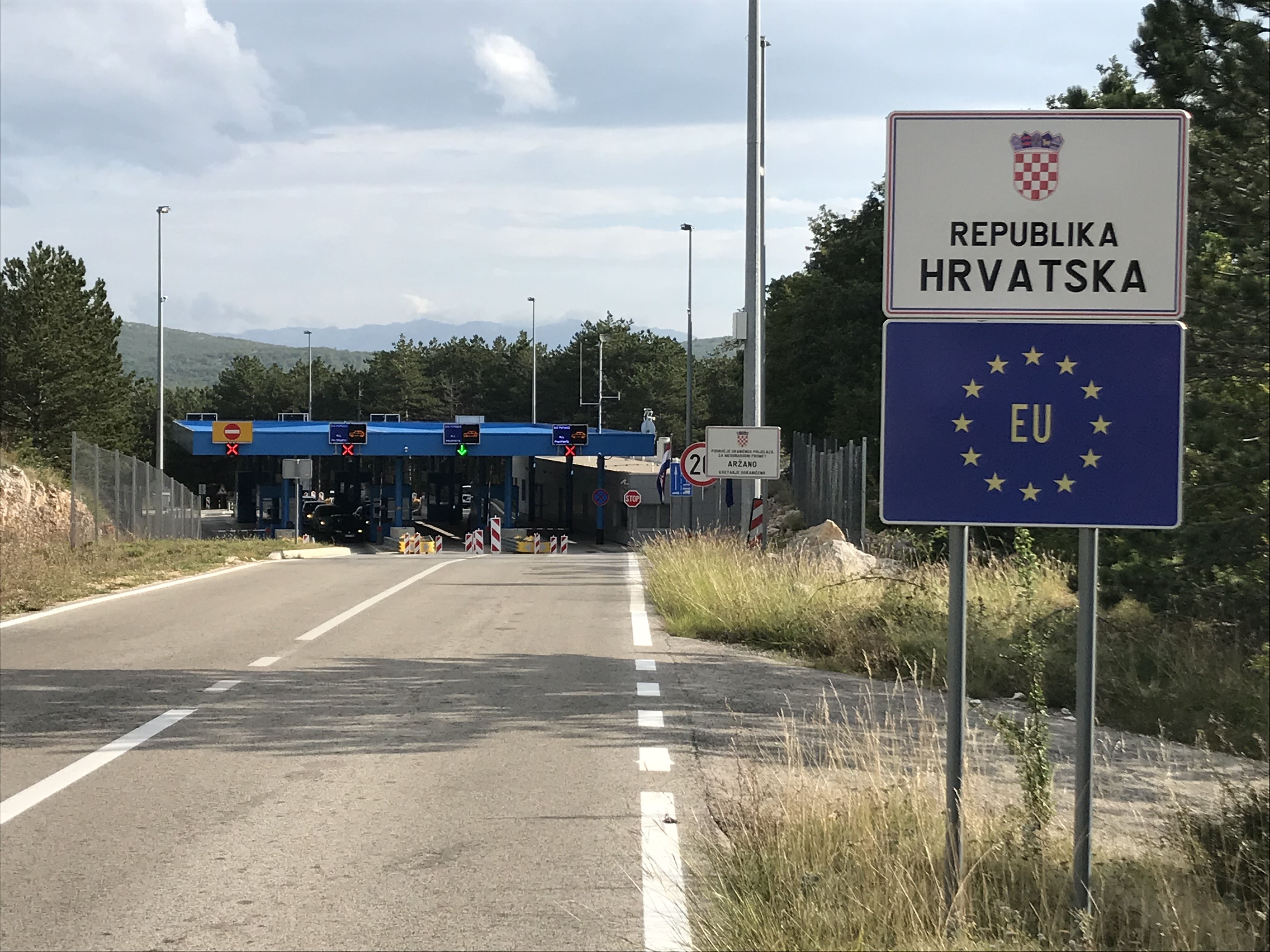 In apertura: confine croato (https://commons.wikimedia.org/wiki/File:Ar%C5%BEano_border_crossing_Croatia-Bosnia_3.jpg).